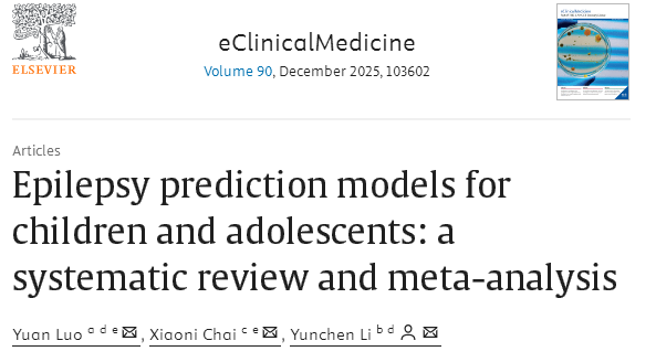 近日,中南大学湘雅二医院儿科李昀宸副主任护师团队联合首都医科大学罗园博士在国际权威学术期刊《eClinicalMedicine》(中科院一区Top期刊,IF=10)发表题为“Epilepsy prediction models for children and adolescents: a systematic review and meta-analysis”的研究论文。