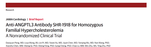 近日,中南大学湘雅二医院心血管内科彭道泉教授团队在《美国医学会心脏病学》(JAMA Cardiology,IF= 14.1,中科院一区TOP期刊)发表题为“抗ANGPTL3抗体SHR-1918治疗纯合子型家族性高胆固醇血症一项II期临床试验“的原创性研究论文。