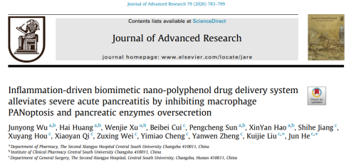 近日,中南大学湘雅二医院药学部向大雄教授团队在三阴性乳腺癌(TNBC)生物疗法、急性胰腺炎(SAP)纳米药物治疗及胞外囊泡(EVs)临床转化领域取得多项创新突破。相关研究成果分别发表在国际权威学术期刊《Journal of Advanced Research》(中科院一区,IF:13)、《Journal of Controlled Release》(中科院一区,IF:11.5)以及《Materials Today Bio》(中科院一区,IF:10.2)上。这系列研究不仅深入探讨了重大疾病的病理机制,还成功验证了多种生物模拟及活性材料策略,为临床精准治疗提供了全新视角。