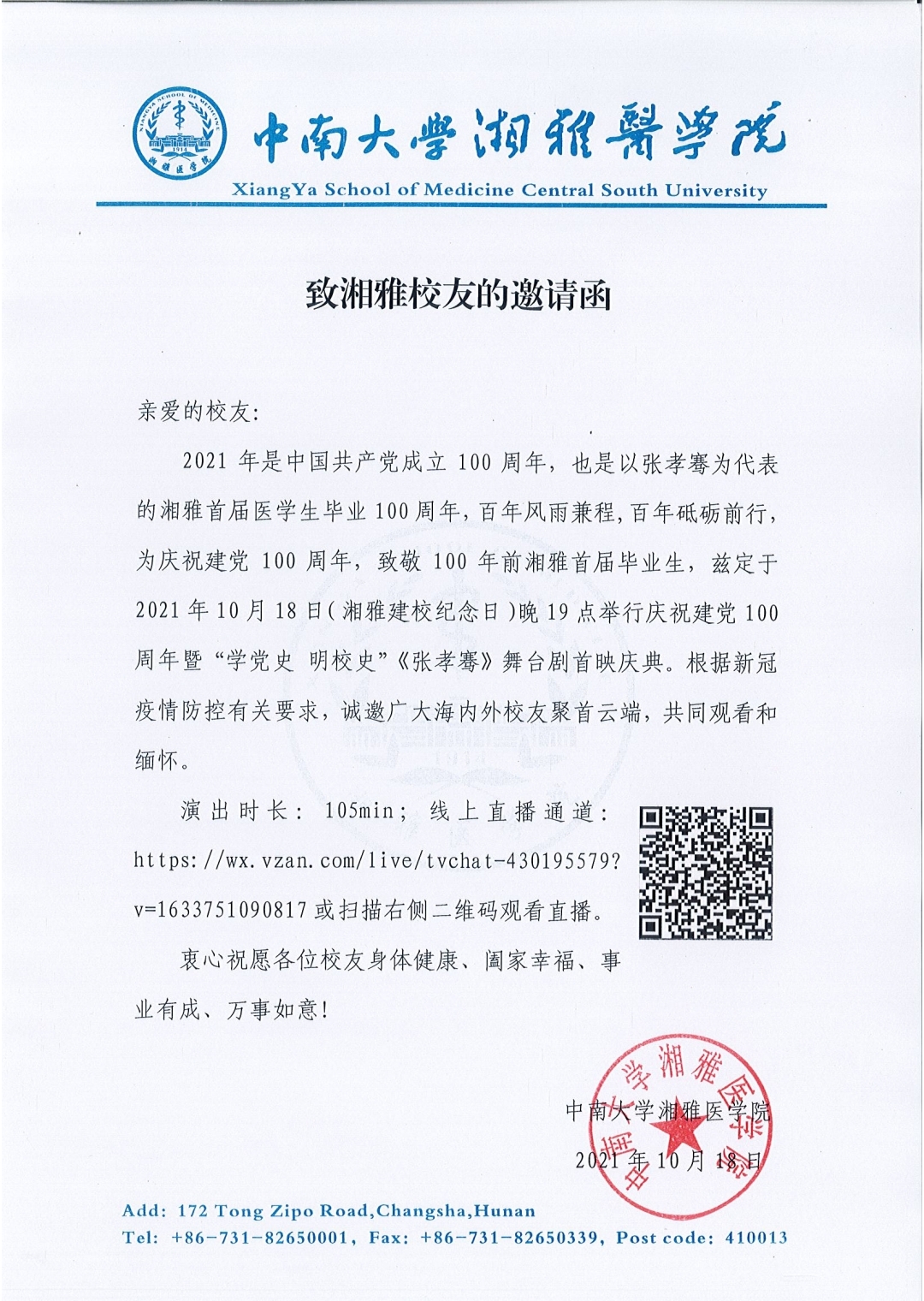 致湘雅校友的邀请函