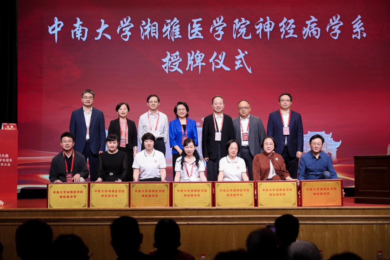 现场领导为湘雅医学院神经病学系建设单位授牌,湘雅医院、湘雅二医院、湘雅三医院,湘雅医学院附属海口医院、附属长沙医院、附属株洲医院、附属常德医院等代表接牌。湘雅医学院神经病学系主任、湘雅医院神经内科主任沈璐教授作表态发言,学系将以精诚团结的协作精神、务实创新的科研态度、奋力拼搏的进取决心,全力推动学科在医、教、研各方面取得高质量突破,为健康中国培养更多优秀人才。