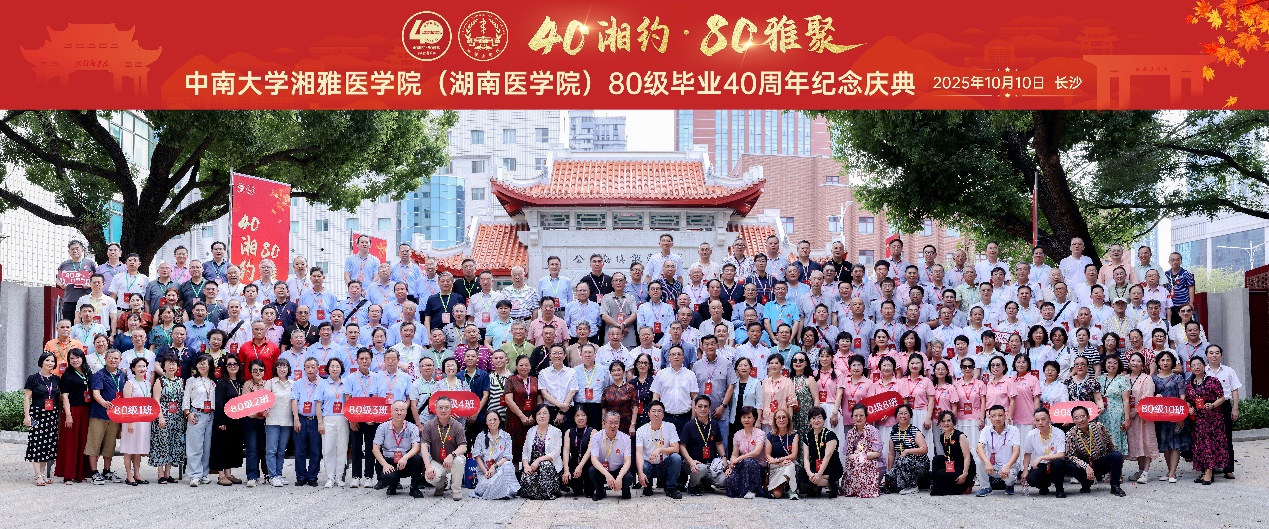 10月10日,以“40湘约·80雅聚”为主题的中南大学湘雅医学院(原湖南医学院)1980级毕业40周年纪念庆典在开福校区盛大举行。两百余位校友从八方归来,齐聚母校故地,共叙同窗情谊,重温医路初心。