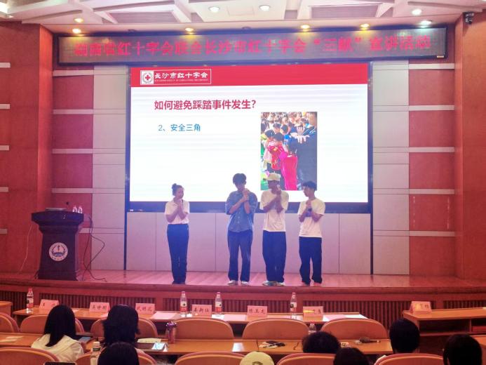 2025年10月11日下午14时30分,由湖南省红十字会与长沙市红十字会联合主办的“无偿献血、造血干细胞捐献、遗体和人体器官捐献”(以下简称“三献”)主题宣讲活动在中南大学杏林校区福庆楼四楼学术报告厅成功举行。湘雅医学院常务副院长武明花、长沙市红十字会秘书长姜新任、湘雅医学院党委副书记吴世明、湖南省红十字会器官捐献管理中心陈玉龙等领导嘉宾及师生代表共100余人参与活动,共同见证生命教育与公益精神的传承。活动由中南大学湘雅红十字会指导老师张先桃主持。