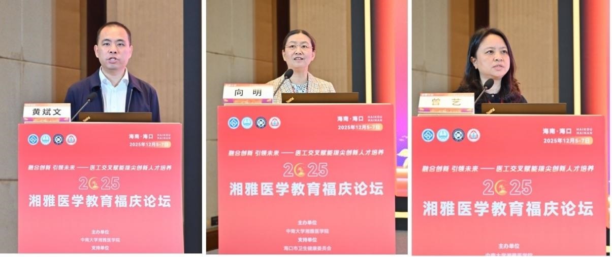 2025年12月6日至7日,由中南大学湘雅医学院主办,中南大学湘雅三医院、中南大学湘雅医学院附属海口医院共同承办的2025湘雅医学教育福庆论坛在海南海口隆重举行。本届论坛汇聚了来自全国相关领域的近500位领导、专家学者与一线教师,围绕“融合创新引领未来——医工交叉赋能拔尖创新人才培养”主题,开展了一场深度、开放的前沿对话。