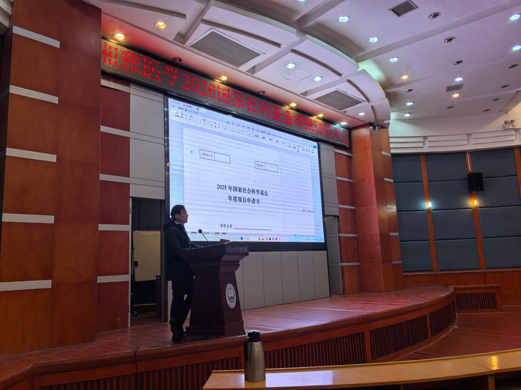 1月14日,湘雅医学院联合人文社会科学处在福庆楼学术报告厅圆满举行2026年国家社科基金申报培训动员会议。中南大学人文社会科学处处长毛俊响教授和湘雅护理学院肖锦南副教授为湘雅师生提供了专题辅导,会议由湘雅医学院党委副书记吴世明主持,吸引了湘雅医学院、医口二级学院及附属医院上百名师生参与交流。