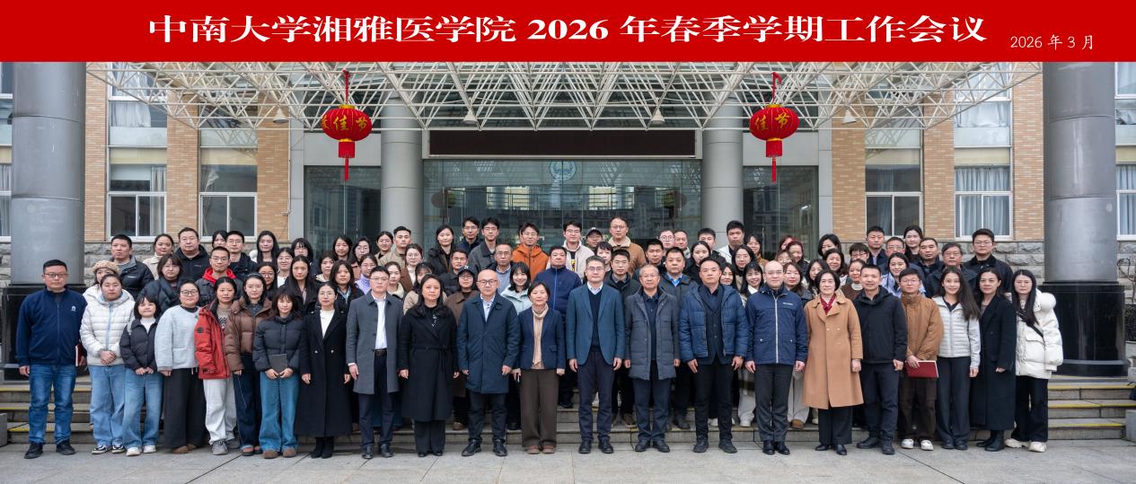 3月3日下午,湘雅医学院2026年春季学期工作会议在杏林校区福庆楼四楼报告厅召开。会议深入学习贯彻学校2026年春季学期工作会议精神,全面总结医学“十四五”发展成就,系统谋划“十五五”发展规划,部署2026年重点工作。湘雅医学院党委书记朱利勇传达学校会议精神,常务副院长武明花作专题报告。湘雅医学院全体领导班子成员、全体教职工参加会议。会议由党委副书记吴世明主持。
